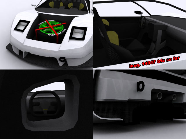 Die Damage-parts kannst du noch mit einer Scratch-textur (alphamäßig) versehen [gibts ne Vorlage von GTA] bzw die Fensterscheiben damit der Lack auch etwas Schaden nimmt bzw das Glas reisst